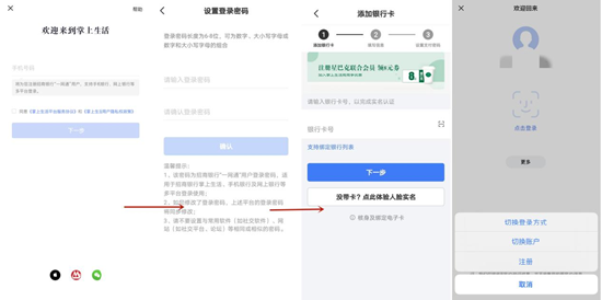 招商银行掌上生活App注册流程简便,持卡/非持卡用户输入手机号、验证码,设置登录密码即可完成注册。用户注册成功后,可以进行绑卡认证,也可以通过人脸实名认证。