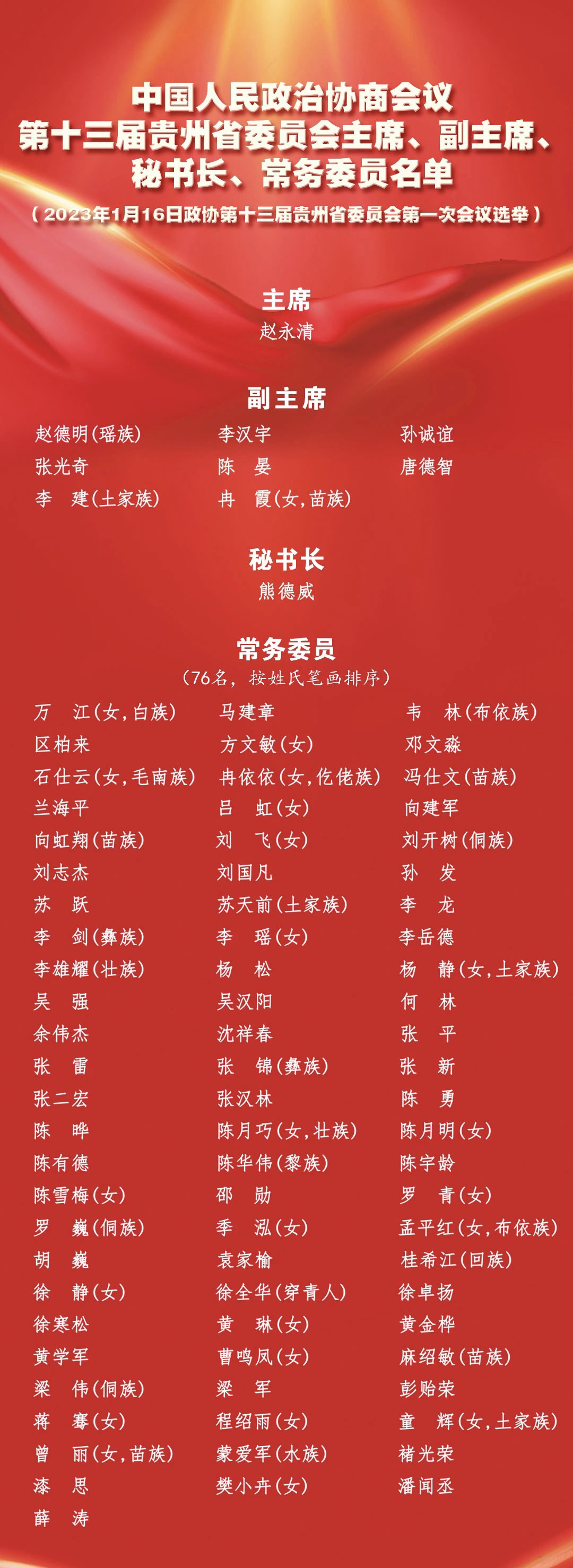 会议同时选举产生了76名政协第十三届贵州省委员会常务委员。