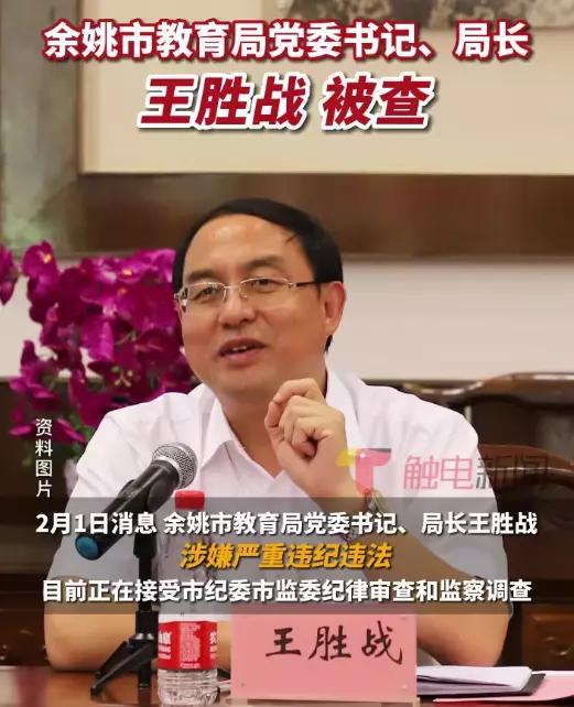 事情缘起本月初,清廉宁波微信公众号发布的一则通报:余姚市教育局党委书记、局长王胜战被查。