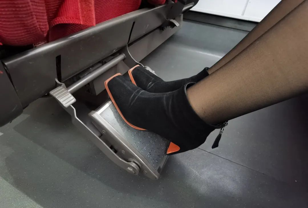 部分车型的一等座,配有绒面脚踏板和普通面脚踏板,如果您想收起脚踏板离开坐席,或是为内侧旅客让行时,无需手动,只要轻踩左侧小踏板,脚踏板就会自动弹起,轻轻翻转,自由切换。