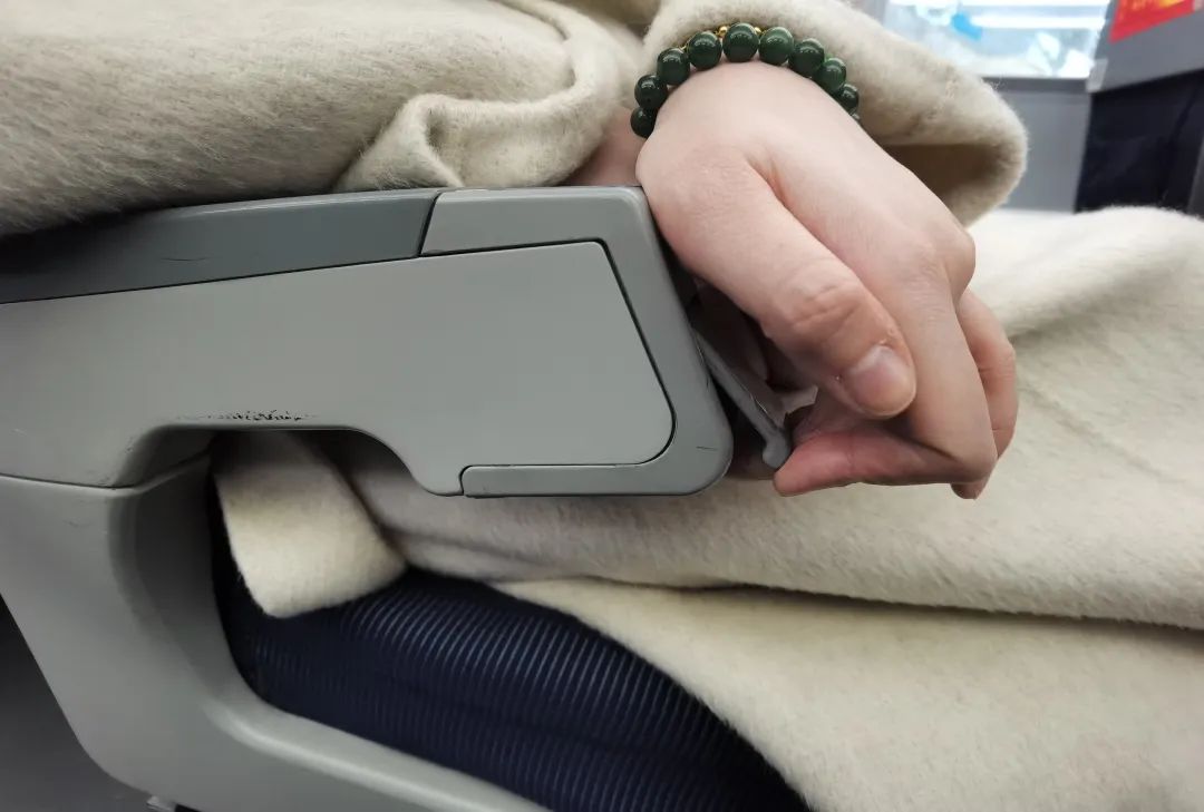 商务座茶桌板,在右侧手臂扶手内哦!打开、取出即可使用。