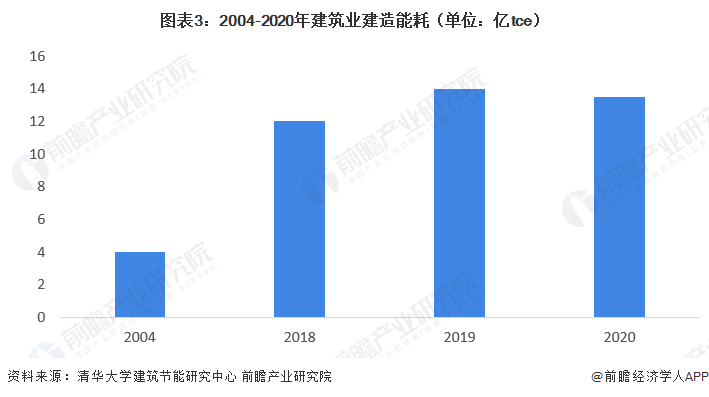 根据清华大学建筑节能研究中心的估算结果,2004年至2020年,中国建筑业建造能耗从接近4亿tce增长到13.5亿tce。建材生产的能耗是建筑业建造能耗的最主要组成部分,其中钢铁和水泥的生产能耗占到建筑业建造总能耗的70%以上。另外,根据《中国建筑能耗与碳排放研究报告(2022)》,2020年我国建筑业能耗总量达22.7亿tce,占全国能耗的45.5%。