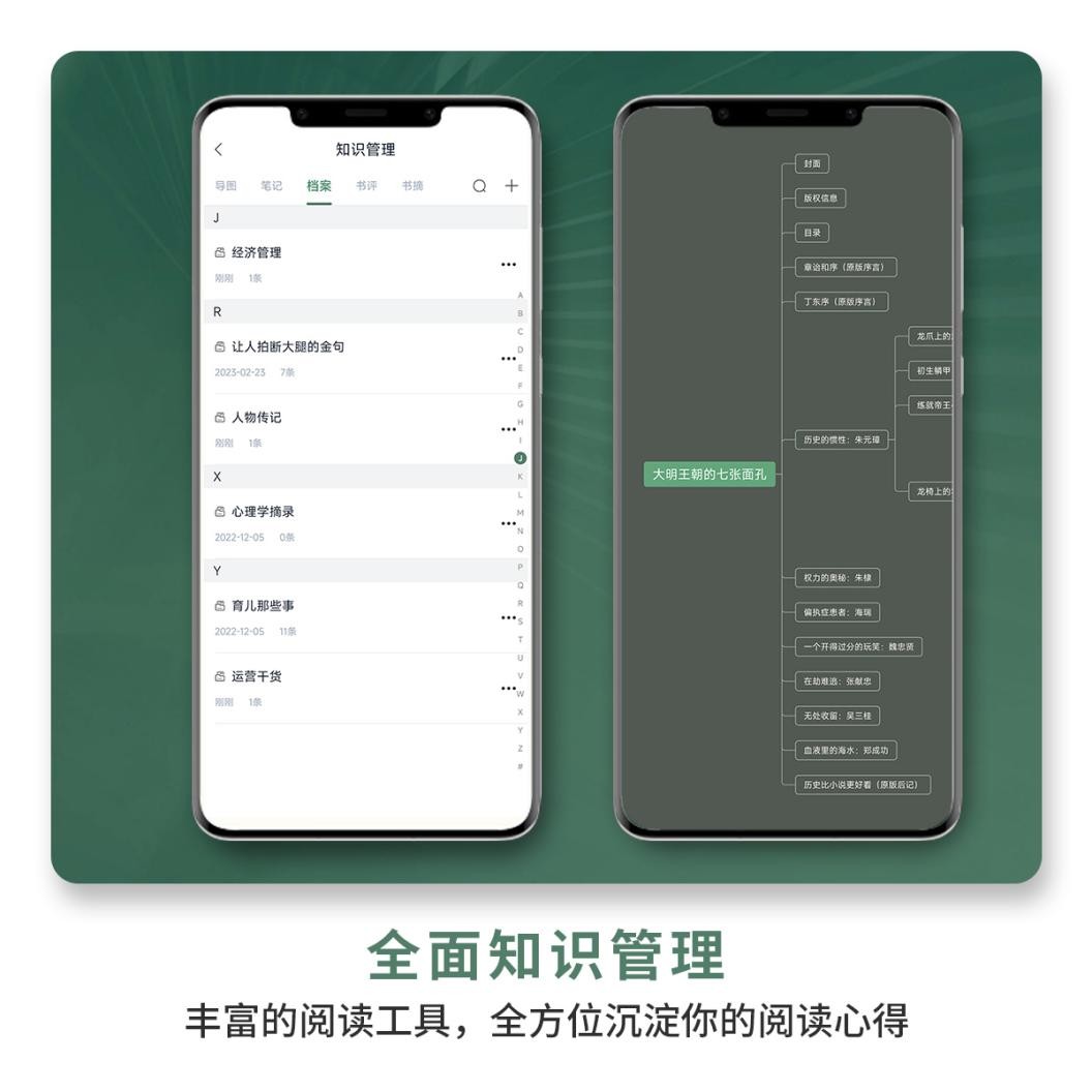 和市面上大多数功能单一的阅读软件不同,藏书馆的运营方向是让读者在畅快阅读的同时,借由知识管理工具,对阅读的书籍进行整合熔炼、内化成精神财富。为此,藏书馆团队开发了高效的知识管理工具,用户无需切换软件,即可在藏书馆内使用笔记、书摘、听书、思维导图、档案、共读等功能,增强知识掌控力,提升学习效率。
