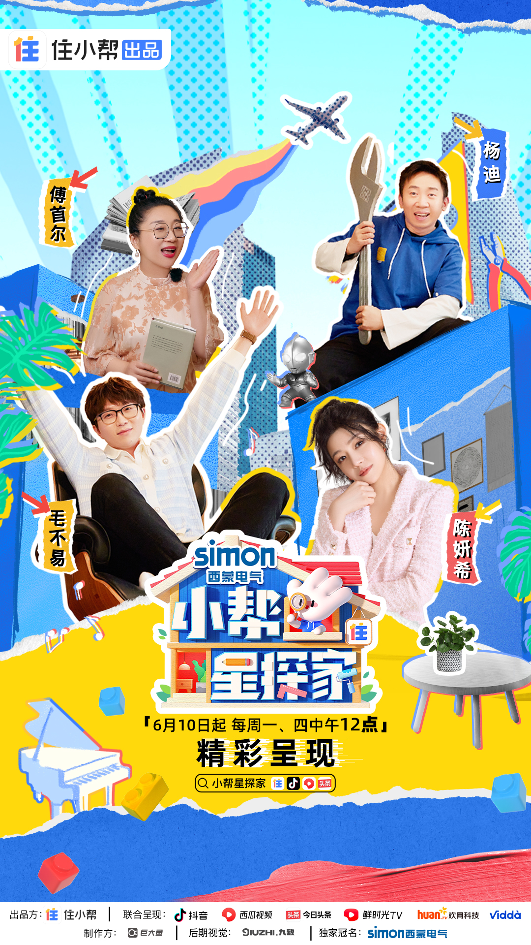 6月28日,由住小帮出品,Simon西蒙电气独家冠名的明星居家社交微综艺《小帮星探家》收官,相关合辑播放量突破2亿!节目聚焦明星探家、居住痛点、家居改造三大视角。主持人杨迪与毛不易、傅首尔、陈妍希携手开启了一场神奇的家居改造之旅,揭秘不同生活场景下的明星生活日常。杨迪为毛不易打造“租房党”的梦中客厅、为傅首尔改造“氛围控”最爱的独处茶室、为陈妍希实现“有娃家庭”显大实用的亲子互动客厅,为观众送去了意料之外的生活惊喜!