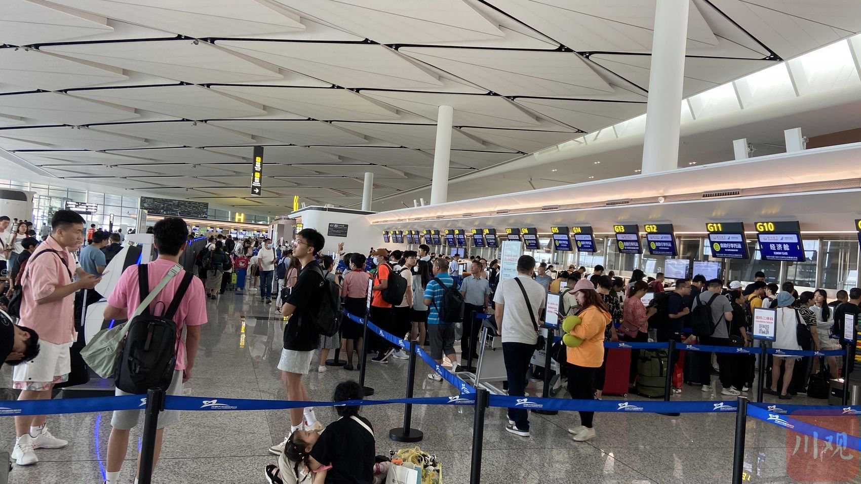 天府机场国内出发大厅旅客众多