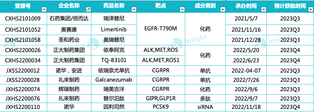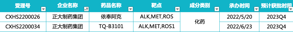 正大天晴在2022年申报上市的2款ALK抑制剂也离获批节点不远了。