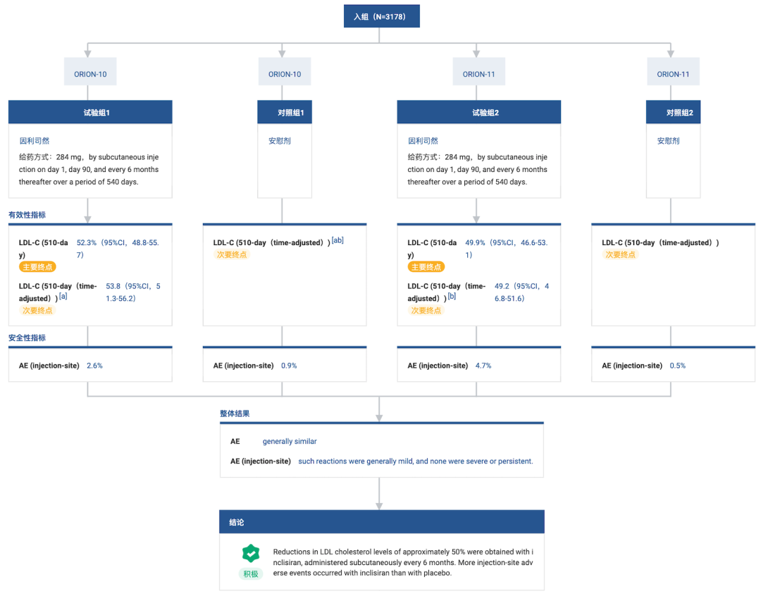 此前诺华披露的ORION系列研究显示,对于使用最大耐受剂量的LDL-C降低疗法后LDL-C水平仍高于目标值的患者。与安慰剂组相比,接受Inclisiran治疗的患者LDL-C从基线至第510天的平均降幅可达50%~52% 。