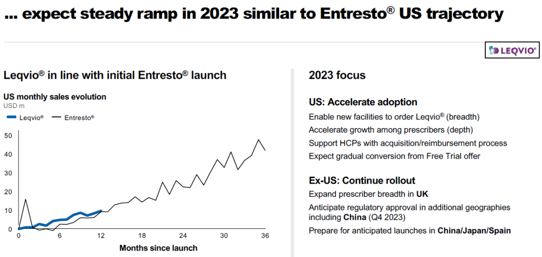 从放量速度来看,据诺华评估,Inclisiran与沙库巴曲+缬沙坦(Entresto)放量速度基本一致,而后者2022全年销售额已达46.44亿美元,有望成为诺华的下一个核心增长点,市场潜力无限。