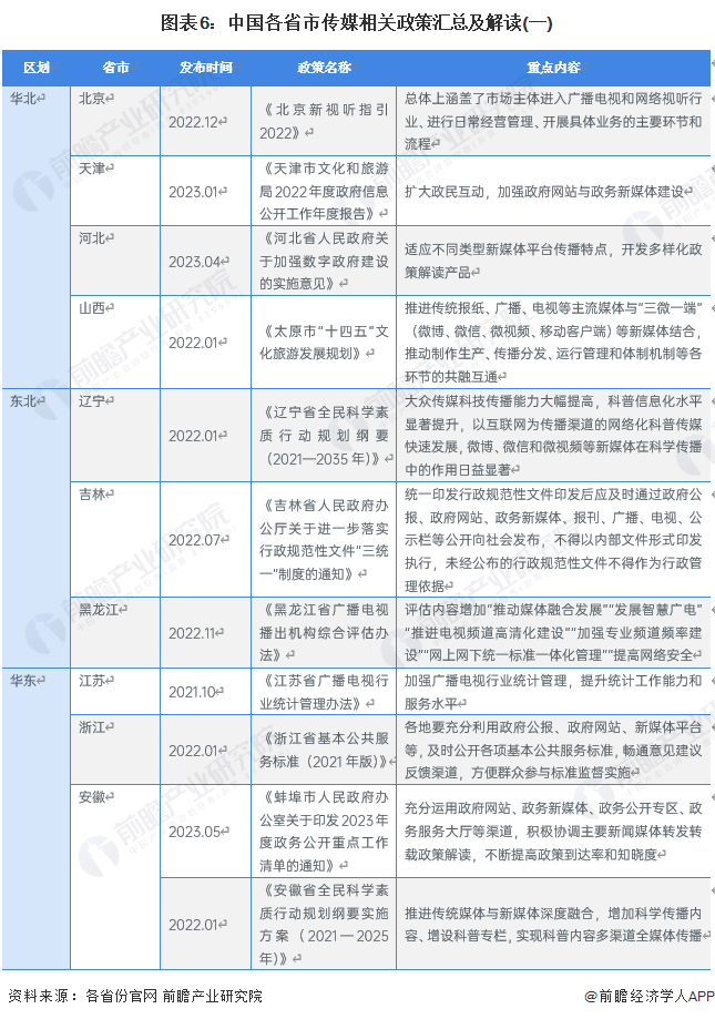 目前,我国主要省市传媒相关政策如下表所示: