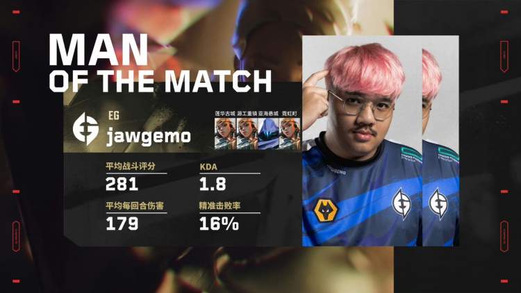 第图四莲华古城仍然是PRX的优势开局,在攻守互换后EG连拿四分。但PRX又拿下两分,中断了EG的进攻节奏,也让队伍缓了一口气,双方战至九比九平。第十九分,Jawgemo打出精彩的四杀,后续EG又得两分,距离胜利仅一步之遥。PRX面对巨大劣势依旧紧绷。在暂停后,EG取得了最后一分。这匹在年初无人看好的黑马队伍, 从败者组杀出,最终在家门口拿下了本次赛事的冠军。EG的Jawgeme也拿下了本场比赛的MVP。