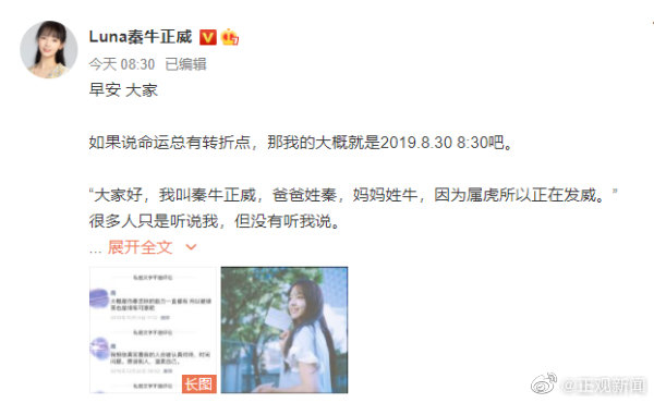 【#秦牛正威首谈与吴亦凡风波# :曾被转1分钱进行羞辱,如今收到很多道歉】8月30日,秦牛正威发文,首次对两年前因为吴亦凡绯闻而经受的网络流言做出回应。文章称,两年前,她非常突兀地出现在大众视野,被推上舆论的风口浪尖,然后以一句话潦草收场。她说,“当时有人往我支付宝里转帐,每次转账0.01元带一句荡妇羞辱的话,一晚上我收了快两百。” 有人去学校官博下恶评施压,说其学术不端,替其申请退学;有人散布合影和旧指甲照,把一切真假混为一谈。“他们没接触过我,但他们有一张嘴,他们说什么就是什么。空口造谣太简单了,困难的是你根本不知道如何证明那些你没做过的事。” “万幸是我没有抑郁,我只是变得更加安静。喜欢月亮,回避人群。” 文中,秦牛正威表示,两年后的今天,她收到了很多人的道歉,完成了许多的第一部。曾无数次想过为自己正名,想自己肯定会热泪盈眶,会百感交集。“可这一天真的来了的时候,居然只剩下平静,原来时间真的会抚平很多曾以为的深刻,很开心也很难过,我释怀了。”