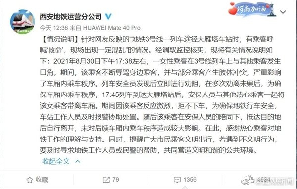 目击者还原西安地铁事件:女子与老人因一个词引发矛盾