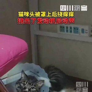 猫咪带头罩挠痒挠出发动机启动声网友:它起飞了吗?