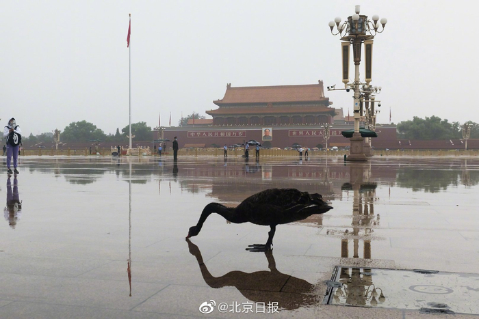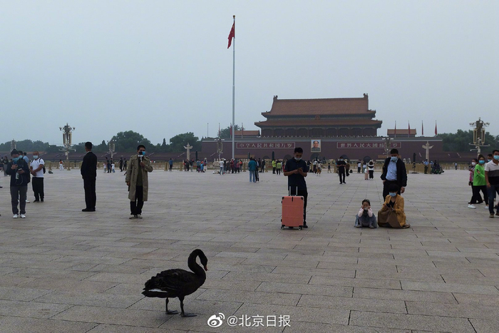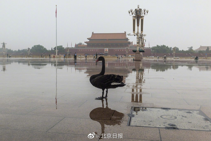 今晨,一只黑天鹅降落天安门广场
