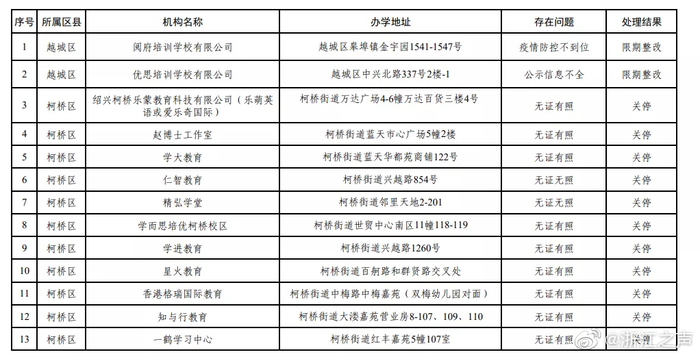 绍兴市公布校外培训机构黑名单 大声 浙江电台浙江之声官方账号 2021.09.0621:36 关注 【绍兴市公布校外培训机构黑名单】近日,绍兴市教育局发布了《绍兴市校外培训机构黑名单》,40家校外培训机构上榜黑名单。(浙江之声记者沈亭亭,综合绍兴发布)
