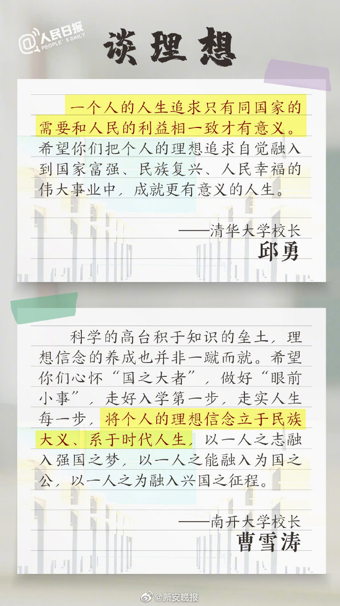 】①#中科大校长说上大学不是进保险柜#,不等于万事大吉;②北交大校长王稼琼:大学的自由绝不等于轻松;③清华大学副教授梅赐琪:荣耀不是你来这里的目的;④西北大学校长郭立宏:不要成为网络的附庸…各大高校开学典礼上,这些语重心长的嘱托,哪句戳中了你?