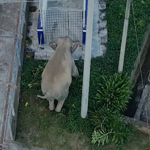 西双版纳亚洲象一家三口串门警营,小象还与警犬互动