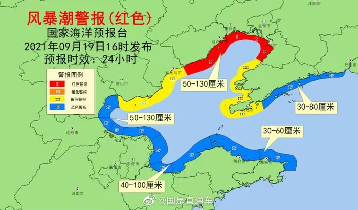 中国北部海区受出海气旋影响,风暴潮红色预警发布