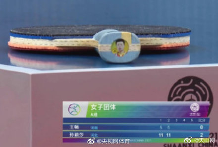 【#孙颖莎的球拍上有马龙照片#】#陕西全运会# 比赛中孙颖莎用了带有马龙照片的球拍款式,神仙同框~