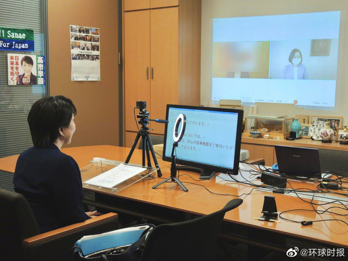 高市早苗视频会见蔡英文,并排展示日本国旗与台湾旗帜