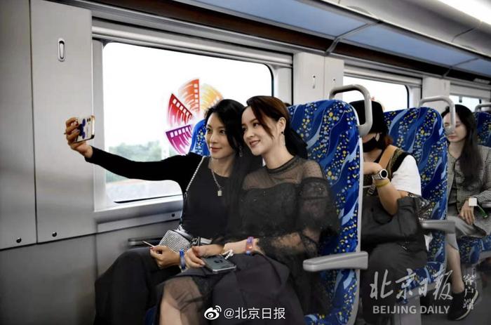 群星搭乘北京市郊铁路参加北影节,“最长”红毯铺到清河火车站
