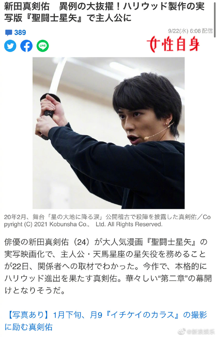 据外媒,官宣,新田真剑佑出演天马座星矢……
