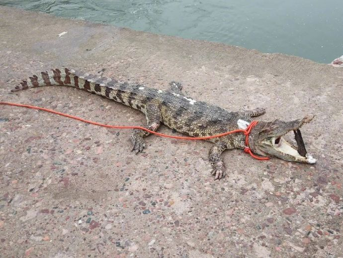 河北被非法放生鳄鱼已死亡,被捕捞上岸