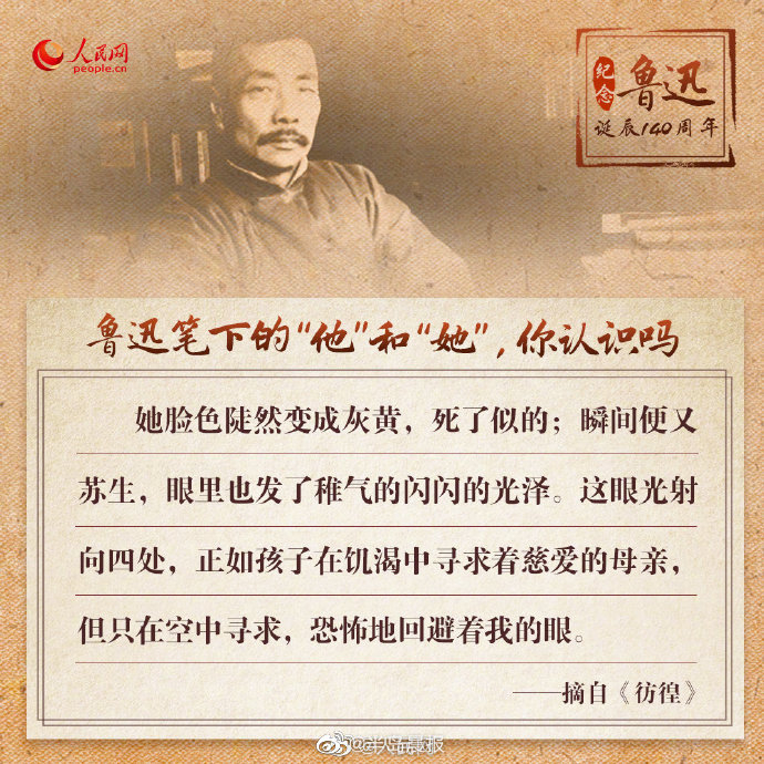 【#鲁迅笔下的他和她#】“其间有一个十一二岁的少年,项带银圈,手捏一柄钢叉”“我也从没有见过这圆规式的姿势”“店内外充满了快活的空气”……读完这些句子,你的脑海中出现了哪些名字?你是否还记得这些经典人物形象?今天,#鲁迅诞辰140周年#,让我们一起走近鲁迅先生笔下的“他”和“她”。(人民网)