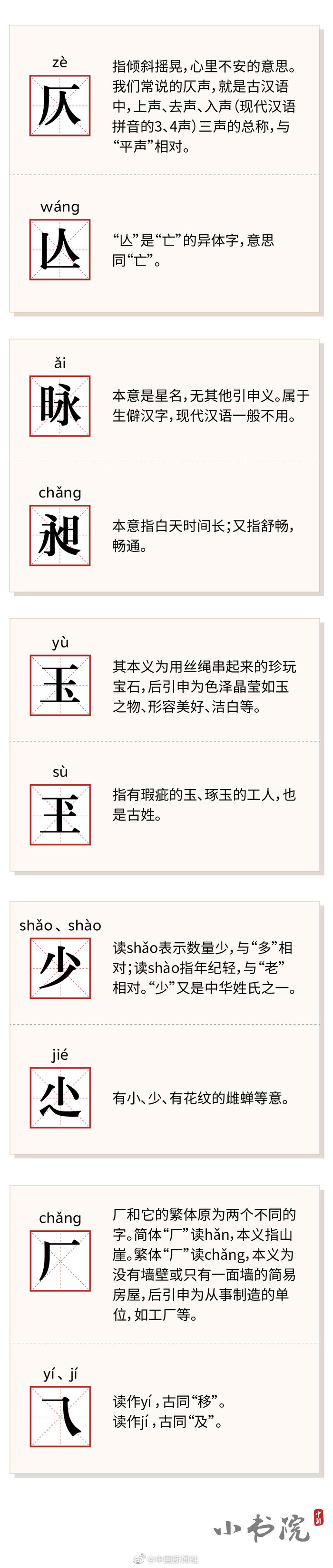 【小书院丨涨知识!这些“天生一对”的汉字,你知道几对?】乒、乓;忐、忑;玉、玊;币、帀;厂、乁……晕了晕了,明明是两个字,却越看越像在照镜子一样。小编感叹,汉字都出双入对了,自己却还是单身……算了,算了,快跟#小书院#一起扫扫盲,涨知识吧↓↓↓