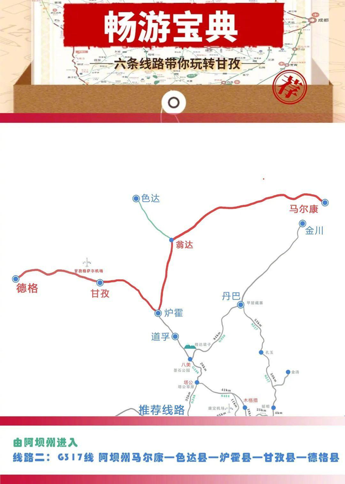 线路二:G317线 阿坝州马尔康—色达县—炉霍县—甘孜县—德格县