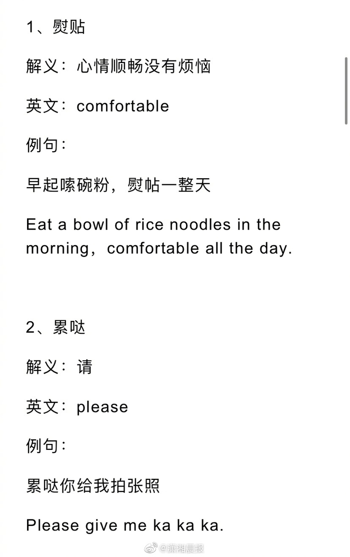 【不带爱相=You bad bad!#长沙话的英语版#来了!你学“废”了吗?】国庆长假,大家玩得开心吗?不管你是在家还是“出家”,想必都感受到了祖国和世界的日新月异,星城长沙也越来越有国际范儿了。今天,晨报君就来教大家,如何把长沙话翻译成散装英语,假期走到哪里都不怕,各位灵泛滴细伢子细妹子看过来!
