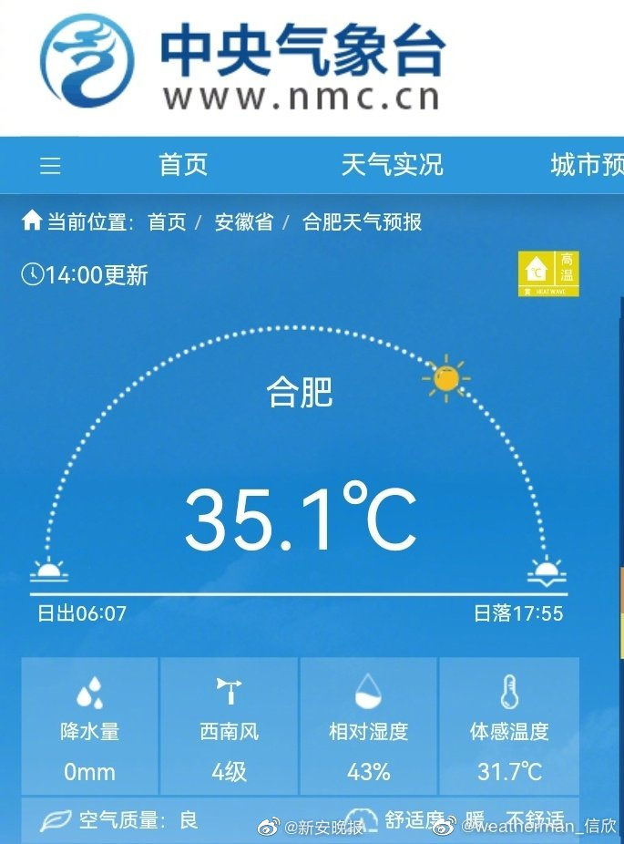 合肥10月首次出现35.1℃高温 合肥高温打破多项历史记录