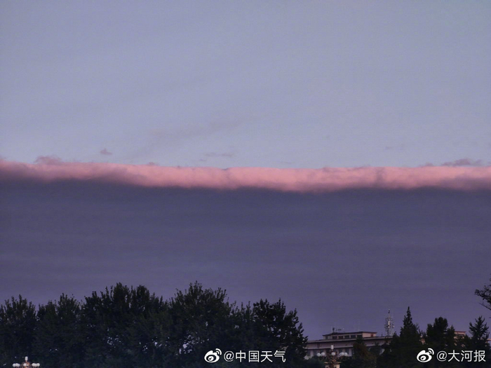 【阴阳天的形成原因是什么?】10月7日,北京上空出现罕见的“阴阳天”,边缘整齐的“阴阳云”将天空一分为二。形成“阴阳天”的原因一般是干冷气流率领的晴空“部队”正好与暖湿气流率领的云层“大军”在高空狭路相逢,发生正面对峙的结果。#北京天空现阴阳天# (图片来源:中国天气)