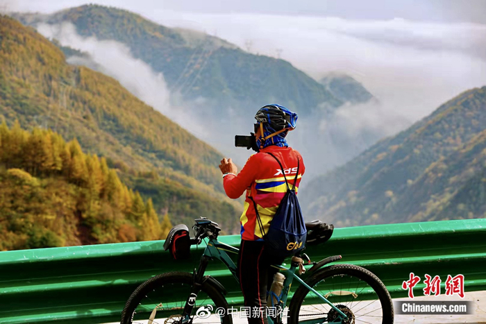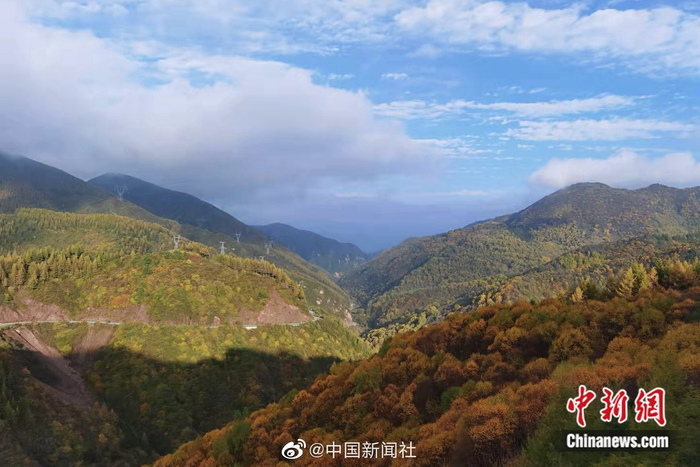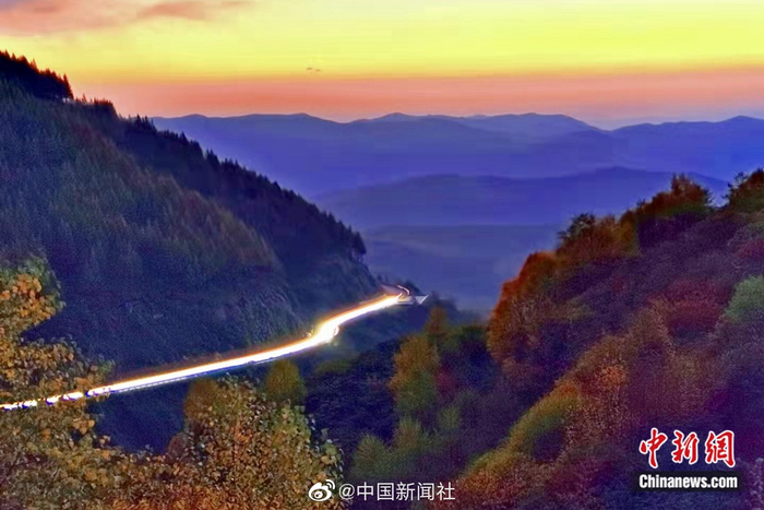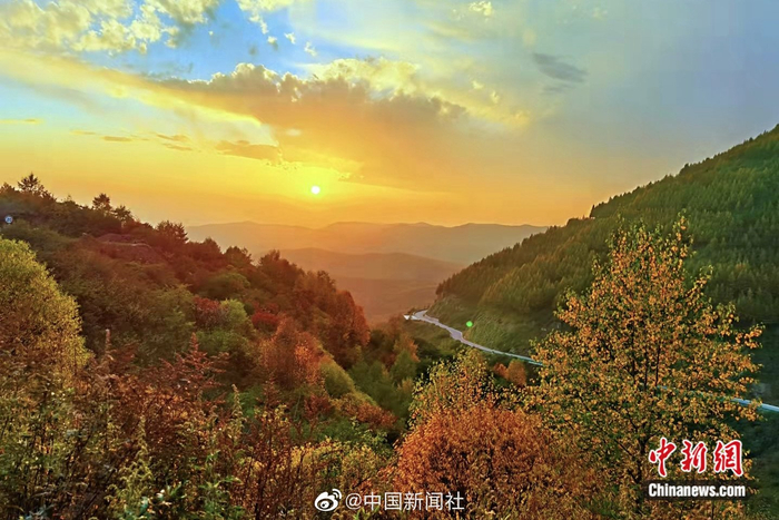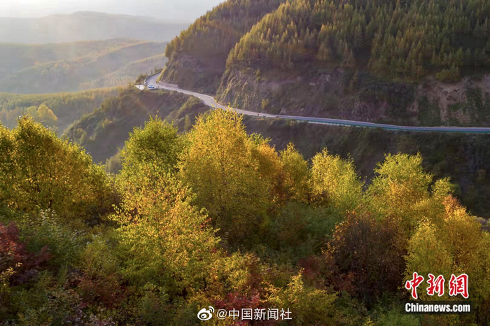 【金秋十月 瞰六盘山层林尽染】金秋十月是六盘山最美的季节。宁夏固原市境内的泾隆公路两旁山峰披上了新衣。远眺风光无限的六盘山,层林尽染秋色宜人,斑斓多彩的美景令人陶醉,山、水、林、石、路绘出情景交融的秀美景色。(李佩珊/文 于勇/图)