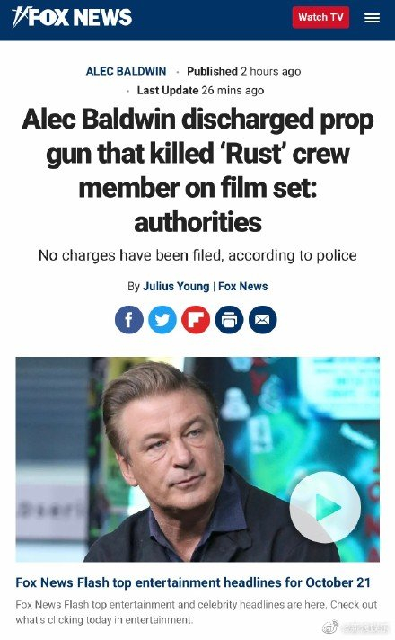 21日,据外媒,电影《Rust》片场发生重大事故……