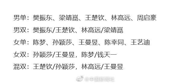 【#孙颖莎王曼昱世乒赛身兼三项#】#樊振东陈梦孙颖莎王曼昱领衔世乒赛阵容#中国乒协25日公布了2021年世界乒乓球锦标赛国乒参赛名单,在东京奥运会中获得金牌的樊振东、陈梦、孙颖莎、王曼昱领衔,这四名球员都将身兼单打与双打两项。此外,孙颖莎、王曼昱还分别将与王楚钦、林高远搭档混双。具体阵容见图。