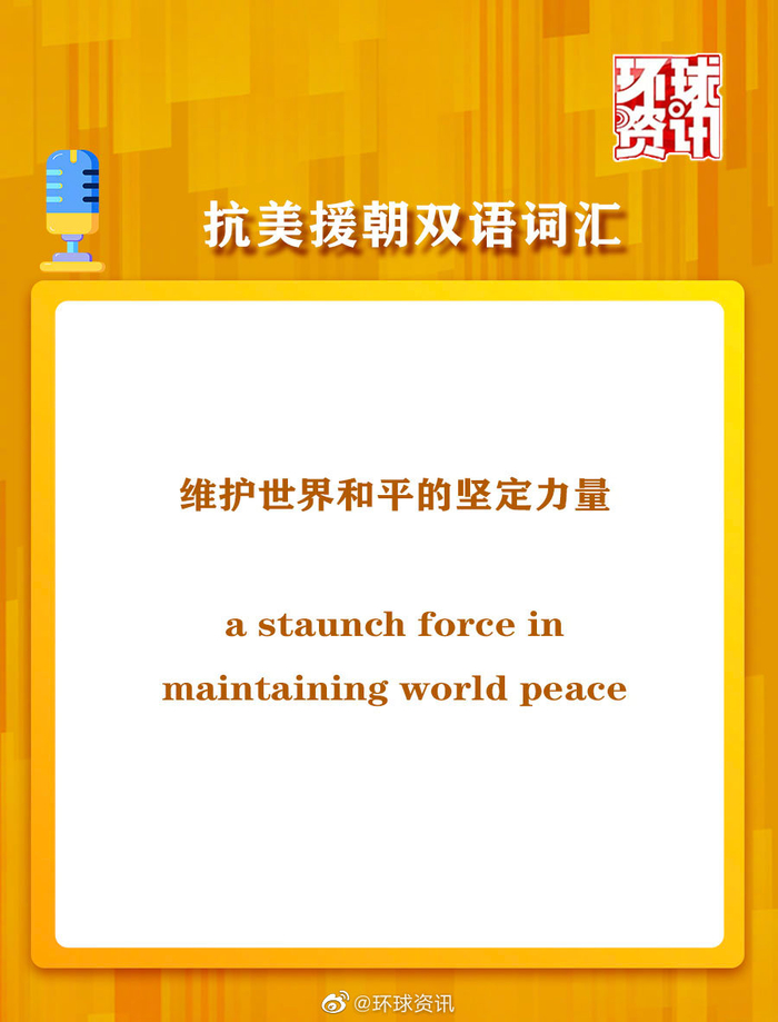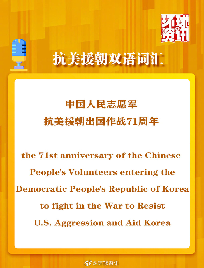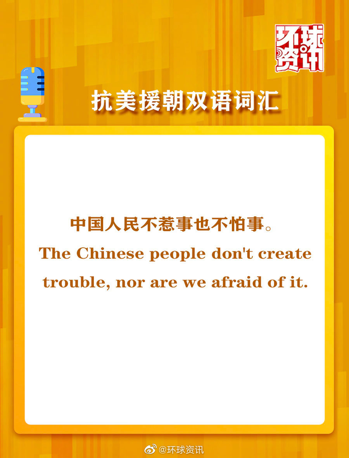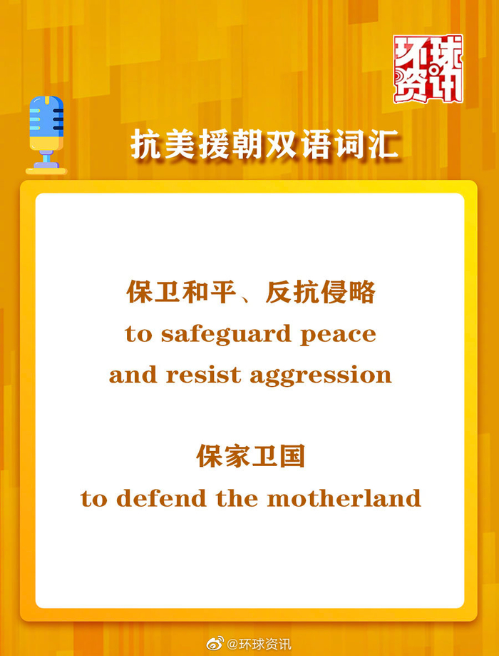 #抗美援朝71周年#【#如何用英文介绍抗美援朝#?分享!学起来!】//#抗美援朝71周年#【#如何用英文介绍抗美援朝#】今天是中国人民志愿军抗美援朝出国作战71周年纪念日,保家卫国的英语怎么说?中国人民不惹事也不怕事的英语怎么样表达?分享!