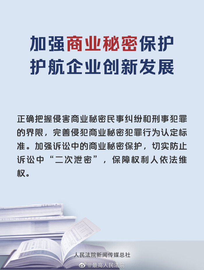 #司法护航知产强国建设#【最高法:#围绕九个方面加强知识产权司法保护#】今天上午,最高人民法院发布《最高人民法院关于加强新时代知识产权审判工作为知识产权强国建设提供有力司法服务和保障的意见》(以下称《意见》)。《意见》围绕科技创新成果、著作权和相关权利、商业标志、新兴领域知识产权、农业科技成果、中医药知识产权、商业秘密、反垄断和反不正当竞争、科技创新主体合法权益等九个方面,提出加强知识产权司法保护的贯彻落实措施。让我们一起跟随一组海报,看人民法院如何护航知产强国建设吧!(周蕤 邢岩)
