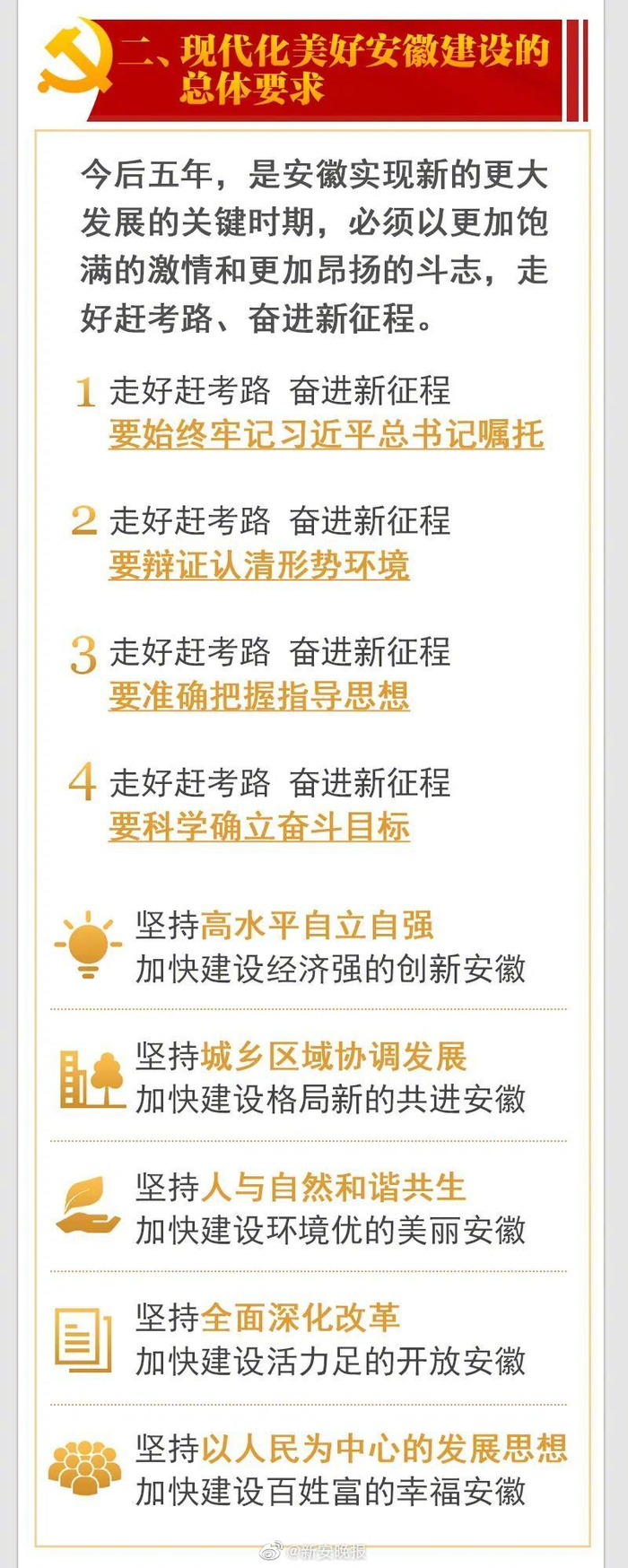 【目标确定!#2025年安徽GDP力争达6.5万亿#:中等收入群体比例超40%】#聚焦安徽省党代会# “走好赶考路、奋进新征程,要科学确立奋斗目标。”10月28日,安徽省委书记郑栅洁在安徽省十一次党代会报告中说,今后五年安徽生产总值力争达到6.5万亿元,城镇居民人均可支配收入接近全国平均水平,农村居民人均可支配收入超过全国平均水平,社会消费品零售总额达到3万亿元左右,居民收入和实际消费水平差距逐步缩小,中等收入群体比例超过40%。