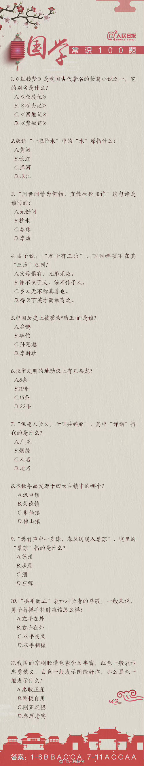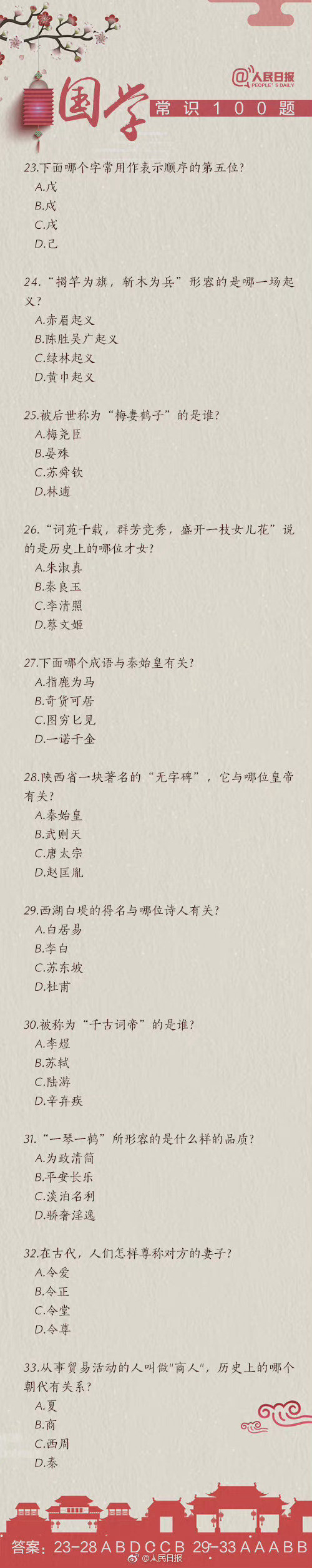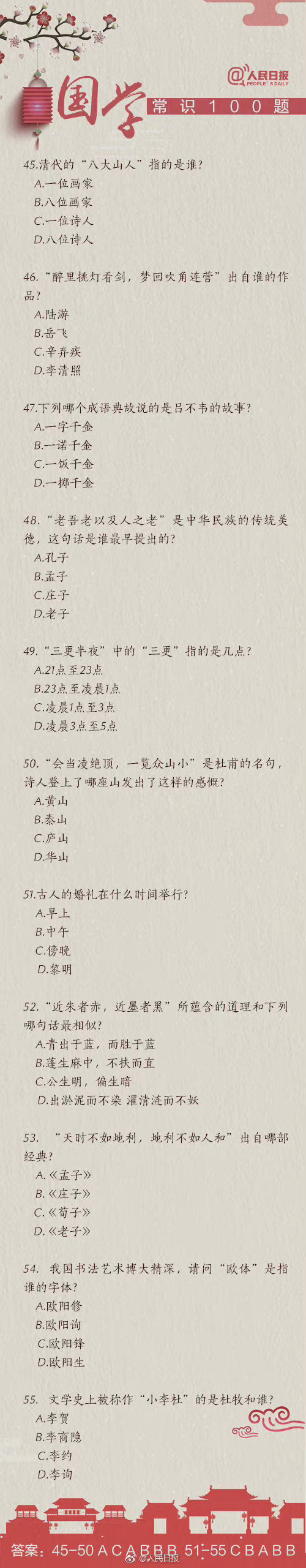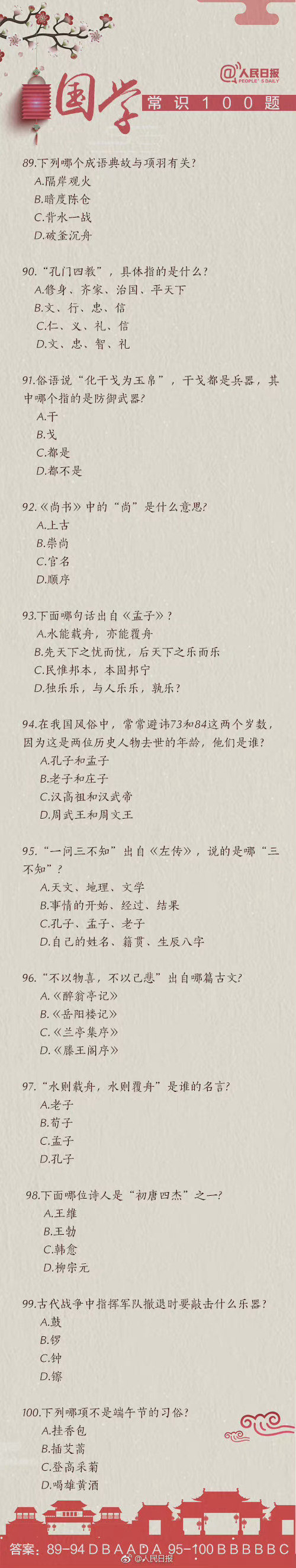 #国考缴费#【知识帖!国学常识100题,你能答对几道?