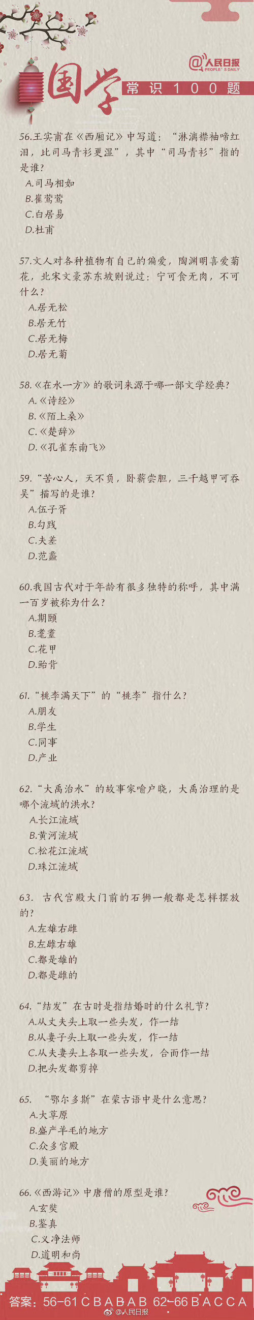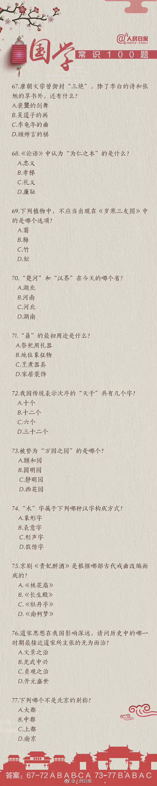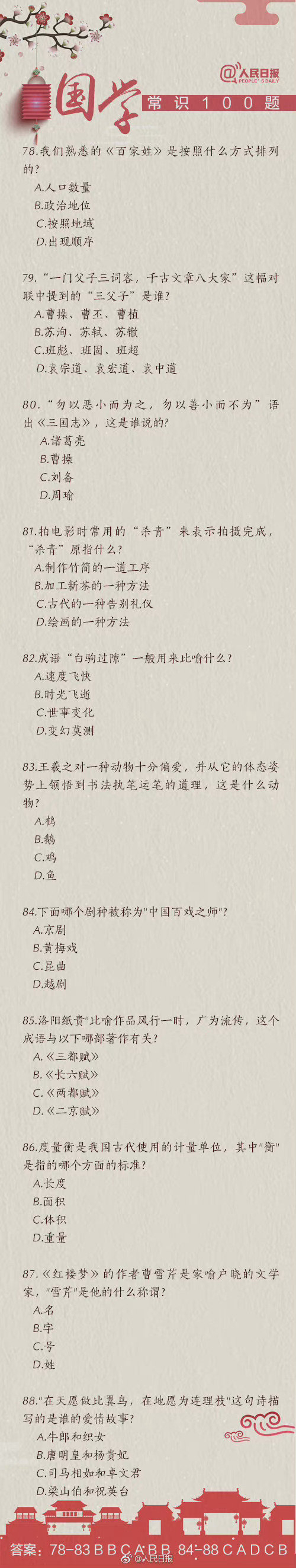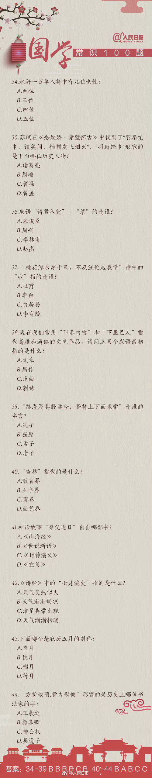 #国考缴费#【知识帖!国学常识100题,你能答对几道?