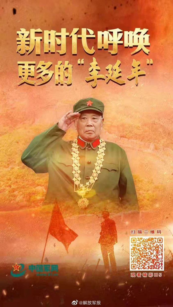 【H5丨新时代呼唤更多的“李延年”!】李延年,男,汉族,中共党员,1928年11月生,河北昌黎人,原54251部队副政治委员。1945年参加革命,先后参加解放战争、湘西剿匪、抗美援朝战争、对越自卫反击战等战役战斗20多次,是为建立新中国、保卫新中国作出重大贡献的战斗英雄。离休后,他初心不改、斗志不减、本色不变,积极弘扬革命优良传统,充分展现了一名老革命军人、老战斗英雄的光辉形象。荣立特等功一次,被志愿军总部授予“一级英雄”称号,荣获解放奖章和胜利功勋荣誉章。