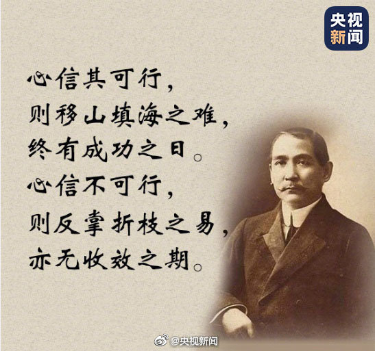 【那年今日丨孙中山名言】①自己应为之事,勿求他人;今日应为之事,勿待明日。②心信其可行,则移山填海之难,终有成功之日。心信不可行,则反掌折枝之易,亦无收效之期。③吾志所向,一往无前;愈挫愈奋,再接再厉。④立志是读书人最要紧的一件事。今天,#孙中山诞辰155周年#。重读,怀念,共勉!