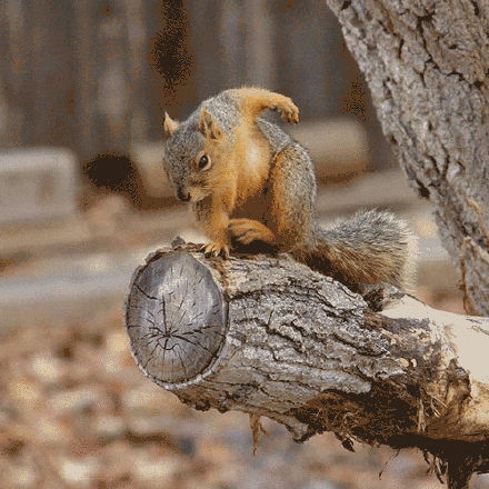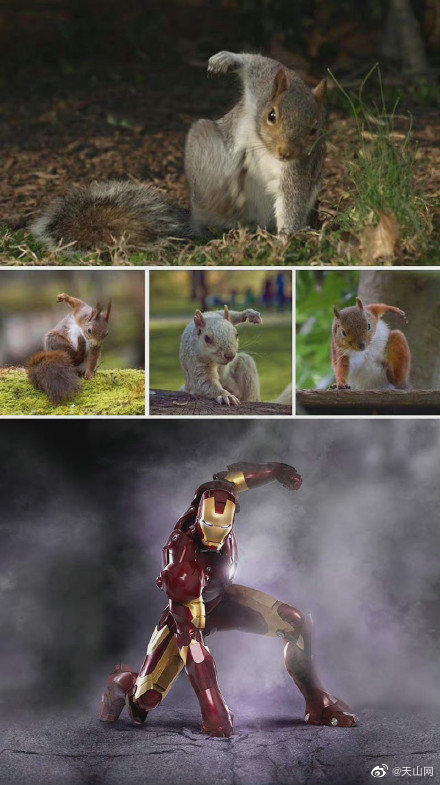 当松鼠预备挠痒痒的时候,它的动作就很像超级英雄落地 ……