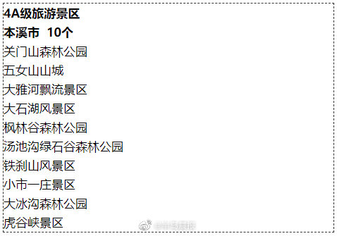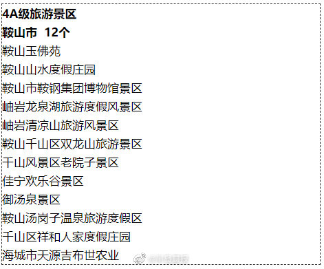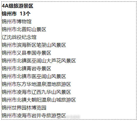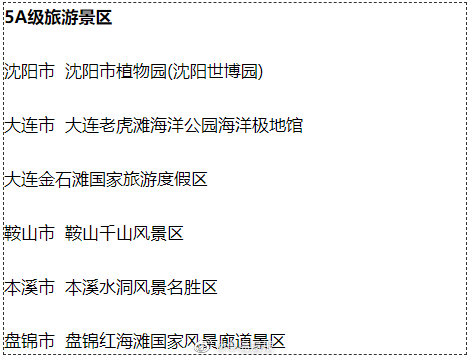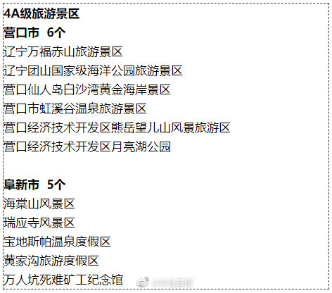 辽宁4A级以上旅游景区名录 来啦! 半岛晨报 《半岛晨报》官方账号 2021.11.1819:10 关注 【#辽宁4A级以上旅游景区名录# 来啦!】近日,我省公布新版4A级以上旅游景区名录。在这版新名单中,包括5A级景区6个,4A级景区135个。看看这些景区都是哪些 ↓ ↓