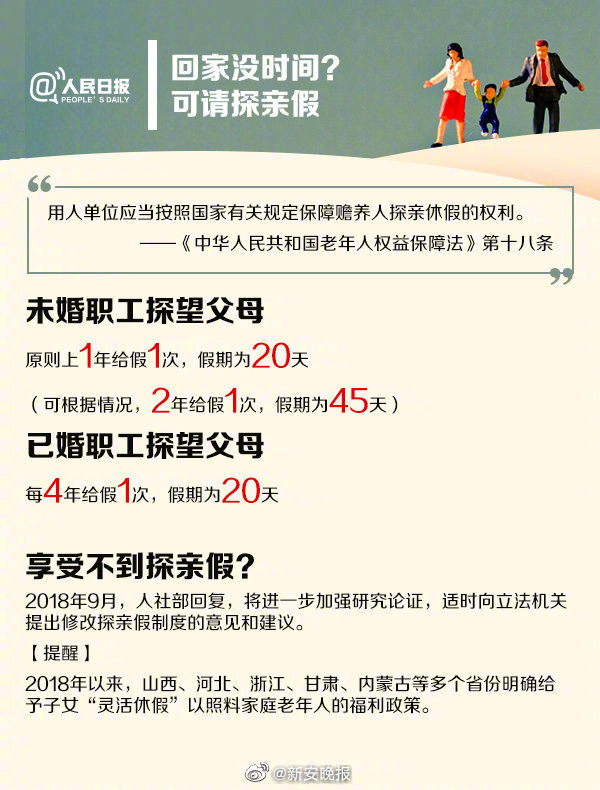 【#安徽规定独生子女陪护假不超15天# #安徽推进居家社区养老服务#】11月16日至17日,安徽省十三届人大常委会第三十次会议听取并审议了《安徽省养老服务条例(草案)》。根据条例草案,安徽将推进居家社区养老服务三级中心建设,对高龄、空巢独居、失能等老年人实施探访。对年满60周岁的父母或由其赡养的老年人患病住院的职工,给予陪护假。职工是独生子女的,每年陪护假累计不超过15日;职工是非独生子女的,每年陪护假累计不超过7日。