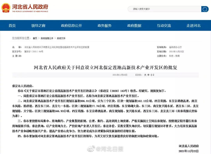 省政府最新批复!河北保定莲池高新技术产业开发区获批设立