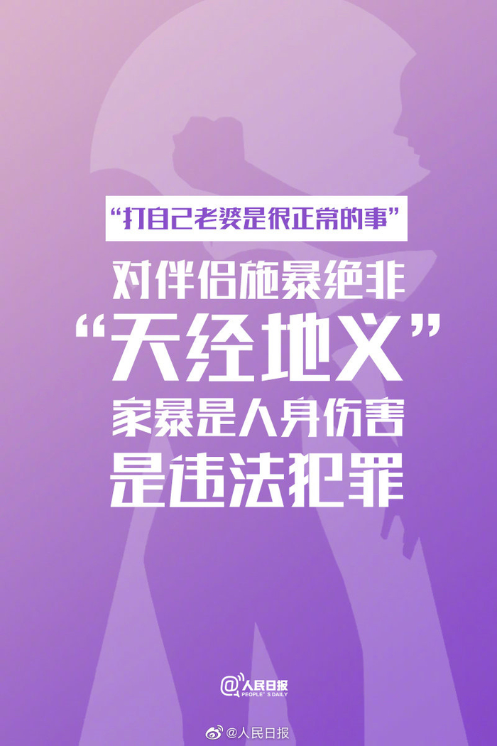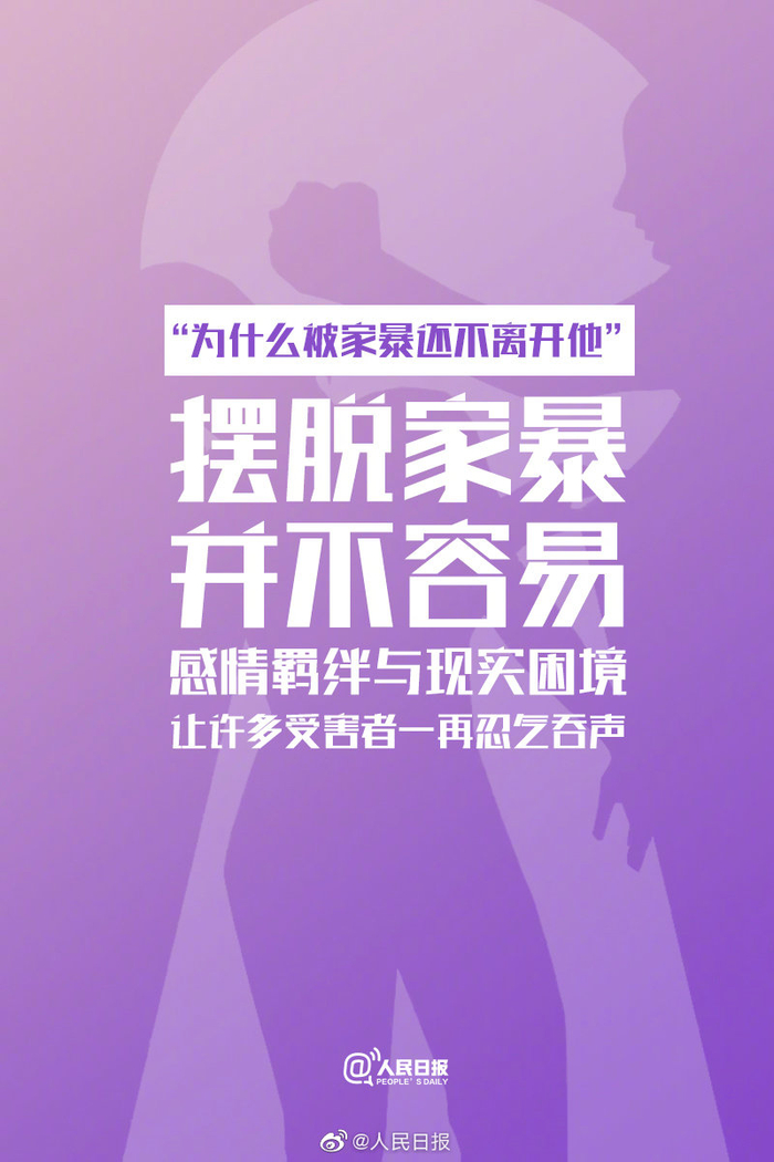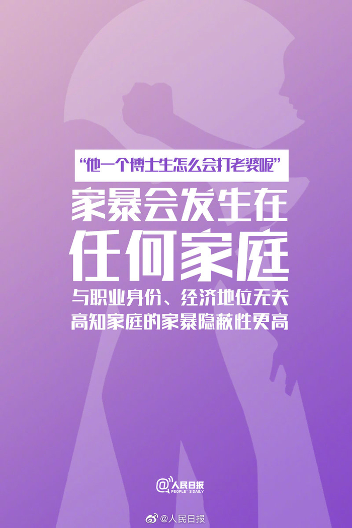 【#家暴只有零次和无数次的差别#,关于家暴的真相让更多人知道!】“他一个博士怎么会打老婆呢”“为什么被家暴还不离开他”“他又没打你,不算家暴吧”…这些话背后,是一个个关于家暴的事实。#家暴不是夫妻吵架#,暴力披上“家”的外衣仍是暴力。今天,国际消除针对妇女暴力日,对家暴勇敢说“不”!
