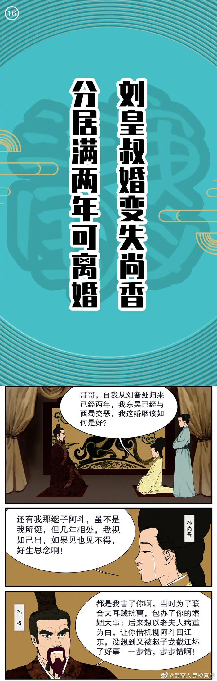 漫画民法典·三国⑯|刘皇叔婚变失尚香,分居满两年可离婚