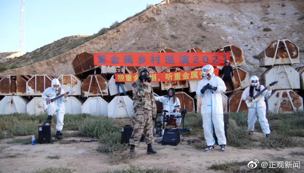 #2021重金属乡村巡演用重金属音乐对抗重金属污染#【两支乐队的田野试水 :用重金属音乐对抗重金属污染,足迹遍及6省】“我们面临比雾霾更严峻却不自知的环境问题,如何把问题向大众呈现出来,是我们小组的第一个挑战。”坚果兄弟说。近一年的时间,他们去往中国6个省份进行调查巡演,脚步遍及山东、陕西、内蒙古、青海、广东、湖南。 2021年,民间公益人士邀请了两支特殊乐队,前往中国南北6个被重金属污染的省份巡回演唱。目前,2021重金属乡村巡演已经结束,小组成员称,目前巡演的视频还在整理中。 “我们期待通过直接行动推动相关部门和企业对11个受重金属污染的乡村进行治理修复,更期待整个社会关注到比雾霾更严峻的重金属污染问题。”参与该活动的成员称。 “火锅”河变清了 2021重金属乡村巡演项目成立于2020年底,“它里有环保组织的成员,还有像坚果兄弟这样的艺术家,还有独立的音乐人,大家一起成立一个民间组织,我们就称它重金属小组。”小组负责人之一小西告诉正观新闻记者。“小组里有创作组和筹备组,筹备组先掌握事实,然后创作组去创作演出。” 2020年底,他们定下了计划,2021年1月至3月调研,招募乐队,6月和8月进行巡演。 “山东淄博的居民向我们求助,他们有一条河长期受到污染,然后异味还有颜色非常的明显。”小西说。 3月27日,租来了一辆五六米长的货车,负责调研的成员将50条1米多长的玩具鱼,放入山东淄博孝妇河,这条河流的明显污染地段长度约2公里、宽度约15米,他们将河水比作在全世界体量最大的长形火锅“汤料”。 “玩具鱼翻着肚皮起舞,它们在牛油火锅汤底浩浩荡荡奔赴死亡,还有10根大红辣椒随意点缀着,悄悄唤醒你沉睡太久的味蕾,没有花里胡哨的其他配菜,也没有大自然的打扰,一切都那么恰到好处,这是正宗人类活动的馈赠!堪称中华餐饮一绝。”调研组在文章中写到。 “希望通过幽默的方式,推动事情的解决。”坚果兄弟说。 4月1日,@淄博发布称,经过有关专业部门初步调查,因关闭小型煤矿等措施,地下水位回升,形成自流,流入岳阳河河道。因该区域矿坑中水中含有大量亚铁离子,亚铁离子与空气接触,氧化为三价铁离子,呈现深黄色。针对网民反映的问题,地方政府正在进一步排查。 10月9日,@淄博环境称,“目前,博山区已组织开展岳阳河矿井水治理项目,在山头街道建设溢出矿井水治理设施,通过治理方案论证、招标、设计等前期推进工作,截止目前,现场地基建设工作已完成,主体设备安装已完成工程量约90%,预计15日完成建设”。 11月14日,有网友向坚果兄弟反馈,孝妇河已经投放了水处理设备。“这条河在几十年后,第一次变得清澈。当地居民在网上给我留言,他们都很欣喜。”当说到居民两个字时,小西语气里充满了兴奋。 “田野”重金属 经过此事,家住淄博的老头乐乐队成员Cy60r9(化名)也对坚果兄弟钦佩不已,“感觉坚果兄弟是很有执行力,很有想法的一群人。” 其实,Cy60r9很早就听说过坚果兄弟做的一些公益项目,此前一直没有联系上,他也一直想尽一份力。” 2021年,恰逢重金属小组开始进行全国巡演,寻找“有种”的重金属乐队,老头乐、土壤改良乐队加入其中。 “他们两个乐队,老头乐在北,土壤改良在南。”小西告诉正观新闻记者,由于资金来自自筹和众筹,考虑资金有限,两个乐队分别在中国的南北开始巡演。 “每个时代的代表性乐队都关注时代的矛盾。上世纪60年代Beatles、Bob Dylan,80年代至今的U2、REM、Radiohead、美国的Bruce Sprinsting……都是这几年最重要的音乐人,他们都深度参与社会运动。”在寻找重金属乐队的文中写道。 他们发明了一个新词:田野重金属——基于田野调查并介入社会现实的重金属音乐。 土壤改良乐队于2021年9月18成立于广州。乐队创办之前,各自成员都有关注社会真实议题及实践。主创之一,a 鬼来源重D音乐队,他们关注劳工权益和流动儿童,还有女性平等。主创之二,蔡所来源于西三歌队。 “调研者们将麦克风递向当事人,连结相关事案的实践者,注重一种参与式的表达。为真实的声音助唱的歌队。看了坚果兄弟和志愿者的调研资料,于是决定组个乐队为环境的污染的地方及遭遇不幸的人们助力。”11月27日,a鬼告诉正观新闻记者。 “人活一口气,气里藏垃圾” Cy60r9去的最后一站是青海,“当时我们租来了车,走到国道的路上,就能看到路边有很多燃烧着的垃圾桶。” 头戴防毒面具,身着白色防护服,生了锈的垃圾箱堆放在乐队身后,上面悬挂着红色的条幅,他们面前只有空荡草原,用力嘶吼着:“人活一口气,气里藏垃圾。” Cy60r9告诉正观新闻记者,考虑在当地拍好后,发到网上会有更好的效果,他们并没有在当地村民面前表演。 2021年初夏,重金属小组在青海暗访调研重金属污染时,听到不少当地居民如此抱怨。调研者实地走访发现,青海至少有十个地方多年来全靠就地露天焚烧来处理生活垃圾,且没有采取任何环保措施。 “每到傍晚,人们都可以看到,摆放在社区周边的一个个锈迹斑斑的垃圾箱里,就会火光渐起,毒烟弥漫。毒烟无声无息地笼罩着一个个小镇,一年又一年,人们不知道的是,这些毒烟的毒性可能比城市的雾霾还要毒一万倍。”坚果兄弟发文称。 “在达日县,垃圾焚烧至少持续十多年;在久治县,冬天取暖后的废渣倒进垃圾箱,让垃圾随时燃起;在香日德,加油站